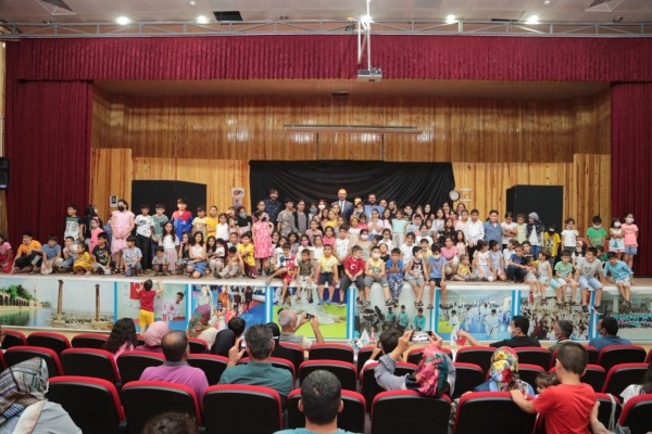 Eyyübiye Belediyesi Kültür ve Sosyal İşler Müdürlüğü, kültür ve sanat etkinlikleri kapsamında çocuklara yönelik ‘Bizim Çocuklar’ isimli tiyatro oyununu sahneledi. Etkinlikte çocukları yalnız bırakmayan Başkan Kuş,” Çocuklarımız için çalışmaya, üretmeye devam ediyoruz.” Dedi. Rutin belediyecilik çalışmalarının yanı sıra her fırsatta kültür ve sanat etkinlikleriyle kamuoyunun karşısına çıkan Eyyübiye Belediyesi, Batıkent kültür Merkezinde açtığı tiyatro kursunda eğitim gören kursiyerlerin sezon finali oyunu sahnelendi. Tiyatro eğitmeni Serdar Aişeoğlu tarafından yıl boyunca eğitilen öğrencilerin sahnelediği oyunda izleyenler gülme krizine girdi. Birbirinden farklı oyunların sahnelendiği ve yaklaşık 1 saat süren oyunu izleyen Eyyübiye Belediye Başkanı Mehmet Kuş, çocuklar ve ailelerinin yoğun ilgisini gördü. Oyunu baştan sona kadar izleyen ve oyun bitiminde çocuklarla birlikte sahneye çıkan Başkan Kuş, çocuklara ve gençlere yönelik çalışmalarının devam edeceğini belirtti.
