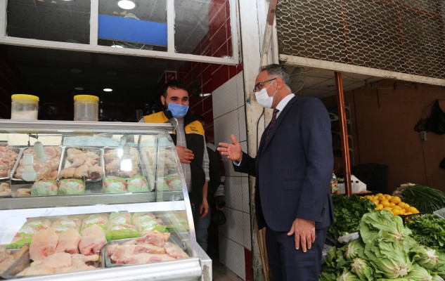 Eyyübiye Belediye Başkanı Mehmet Kuş, esnaf ve vatandaşlarla bir araya gelip, talepleri dinliyor.
