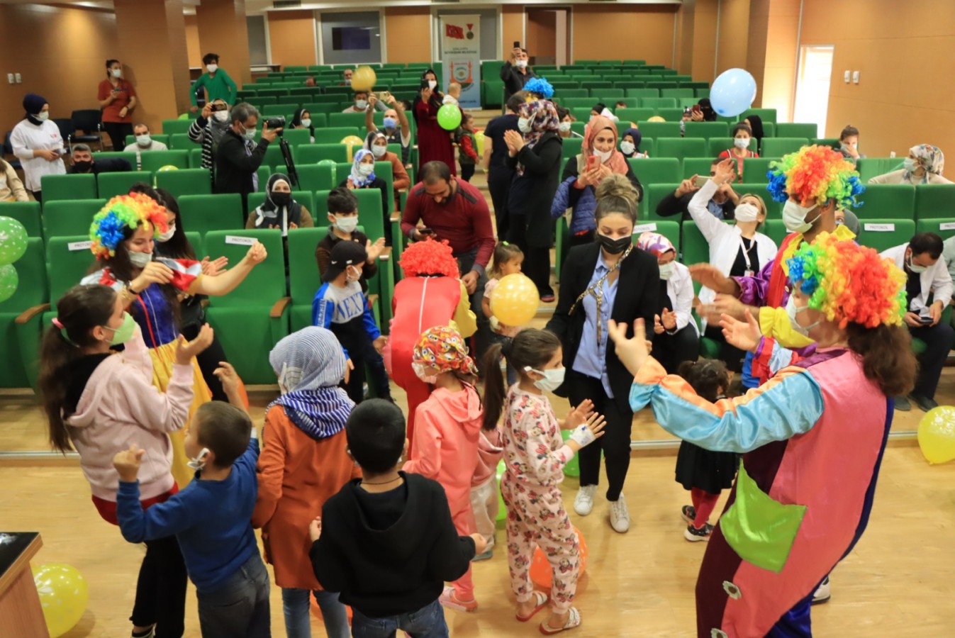 Minik kahramanlar sanatla buluşuyor faaliyeti kapsamında düzenlenen etkinliğe Hastane Başhekimi Öğretim Üyesi Dr. Ahmet Kaya, Hastane yöneticileri, doktorlar, hemşireler ve tedavi gören lösemili çocuklar katıldı.