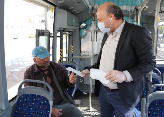 Cumburbaşkanı Recep Tayyip Erdoğan, "Toplu taşıma araçları, pazar yerleri ve marketler gibi insanların toplu şekilde bulunduğu tüm alanlarda herkesin maske takması zorunlu olacak" açıklamasının ardından İçişleri Bakanlığınca yayınlanan genelge ile birlikte Büyükşehir Belediyesi ekiplerince vatandaşlara ücretsiz maske dağıtımı yapıldı.