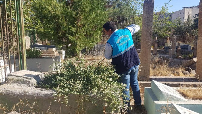 Vatandaşların bayram öncesi ve bayram süresince en yoğun olarak ziyaret ettiği mekânlar arasında gelen mezarlıklar, Viranşehir Belediyesi ekiplerince temizlenerek, daha güzel bir görünüme kavuşturuluyor. Mezarlıkları Kurban Bayramı’na hazırlayan belediye ekipleri, mezarlıklarda kuruyan otlar, dikenler, atılan çöp ve katı atıkları temizliyor.