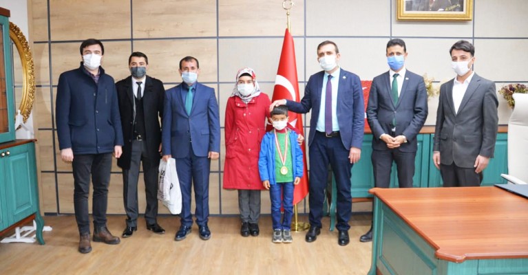 Ziyarette minik şampiyonla bir süre sohbet eden İl Milli Eğitim Müdürü İsmail Yapıcıer, “Bugün burada Halil'in ilimize kazandırdığı başarının mutluluğunu yaşıyoruz. Yaşıtlarına göre daha başarılı olan bir öğrenci olan öğrencimizin yeteneğinin ortaya çıkarılmasında emeği geçen ailesine, okul idarecilerine ve sınıf öğretmenine teşekkür ediyor, Eyyübiye Günbalı İlkokulundan, bir köy okulundan gelerek binlerce öğrenci arasından birinciliği alarak gurur kaynağımız olan Halil'in başarılarının devamını diliyorum” ifadelerine yer verdi.