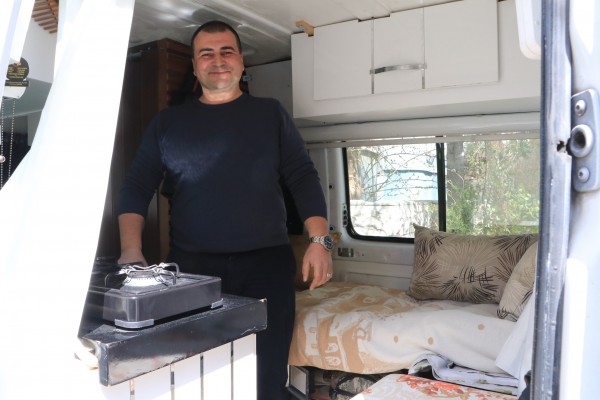 Güven, yaptığı açıklamada, geçen sene pandemi sürecinden dolayı ülkede tam bir durgunluk yaşandığını belirterek, “O ara evde hanımla beraber fazla kalınca, her erkeğin başına geldiği gibi hanım beni defetmeye çalıştı. Gidecek yerim de yoktu, böyle bir minibüs alıp bu eşyaları değerlendirip kaçınılmaz son olan karavanı yaptık. Daha sonra hanım da yardım etti. İkimiz beraber herhangi bir ustaya gitmeden bu karavanı çok kolay yapabildik, yapımı 3 ay sürdü. Yalıtımlı olduğu için kışın bir sıkıntı yaşamadım” dedi.