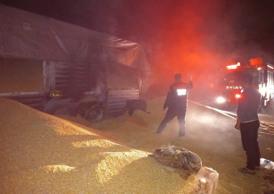 İhbar üzerine olay yerine itfaiye ekipleri sevk edildi. Ekipler yangına müdale ederken, TIR'ın mısır yüklü oluduğu görüldü. Yangının mısırlara daha fazla zarar vermemesi için mısırlar boşaltılırken, yangın da kısa sürede kontrol atına alındı.