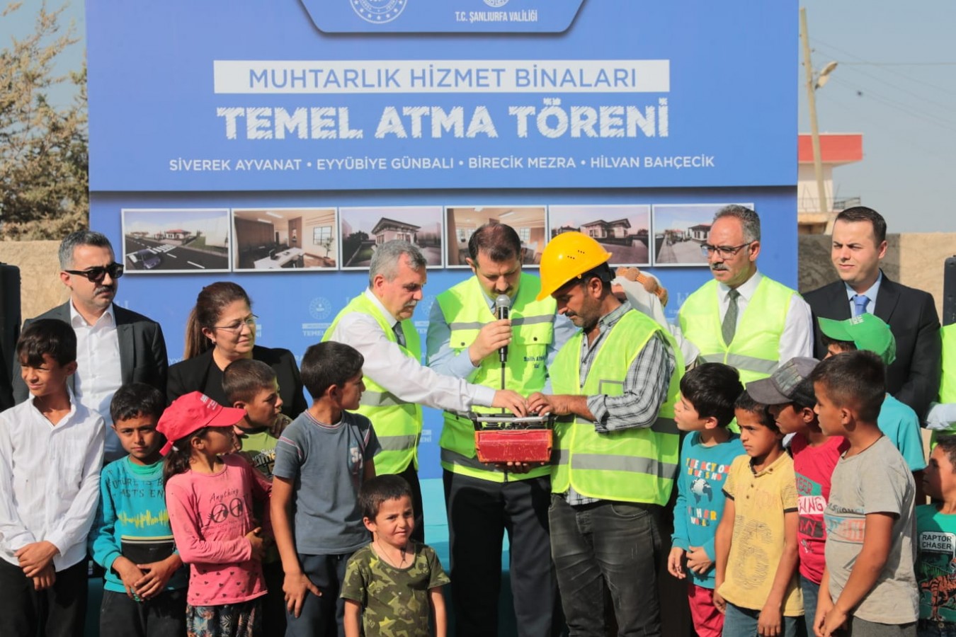 Siverek Ayvanat, Eyyübiye Günbalı, Birecik Mezra, Hilvan Bahçecik bölgelerinde yapılacak olan ve ilk olma özelliği taşıyan muhtarlık hizmet binasının temeli Eyyübiye ilçesi Günbalı kırsal mahallesinde atıldı.