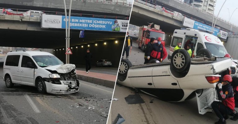 İddiaya göre, sürücülerin direksiyon hakimiyetini kaybetmesi sonucu 06 MFB 99 plakalı araç ile bir otomobil çarpıştı. Kaza anında aldıkları darbeler ile sürücülerin yaralandığı öğrenildi.