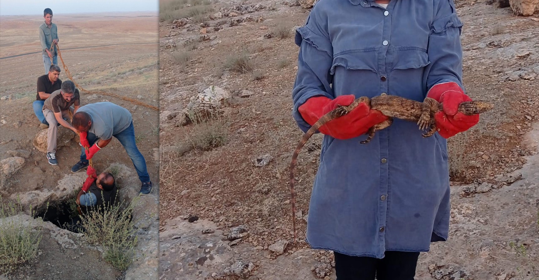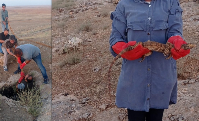 Vatandaşlar, Şanlıurfa Doğa Koruma ve Milli Parklar Şube Müdürlüğü ekiplerine bir sarnıcın içinde çöl varanı olduğunu ve sarnıç içinde sıkıştığını bildirdi. Bölgeye giden ekipler halatlar yardımıyla sarnıca inerek varanı kurtarmayı başardı.