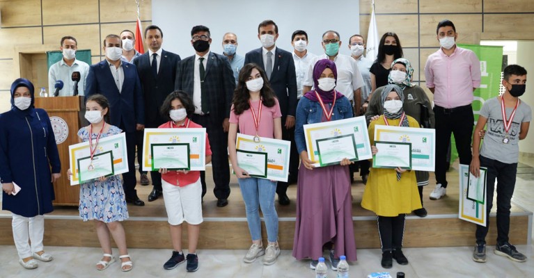 Konuşmaların ardından Görsel Eserler İlkokul İl birincisi Ahmet Doğaç Topaloğlu, Görsel Eserler Ortaokul İl Birincisi Müslüm Şen, Görsel Eserler Lise İl Birincisi Emine Atmaca, Edebi Eserler İlkokul İl Birincisi Gülcan Çebel, Edebi Eserler Ortaokulu İl Birincisi Elif Nur Sarı, Edebi Lise İl Birincisi Hatice Yetim ödüllerini Şanlıurfa İl Milli Eğitim Müdürü İsmail Yapıcıer'in elinden aldı.