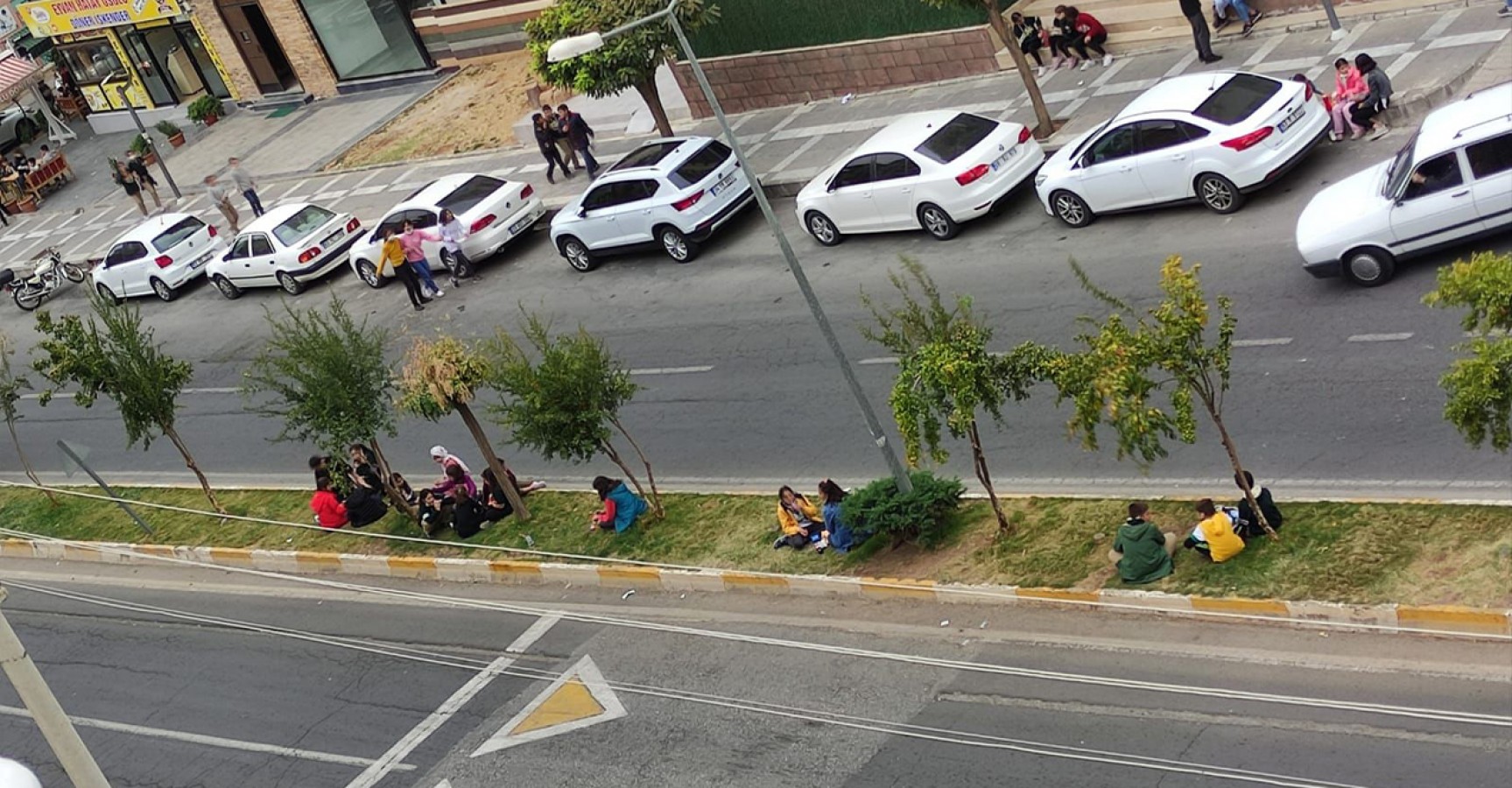 Refüjdeki ağaçların altında yemek yiyen öğrenciler, trafiğin yoğun aktığı caddede de tehlikeye davetiye çıkarıyor. Etraftaki vatandaşlar da öğrencilerin yolun ortasında yemek yemelerinin güvenlikleri için doğru olmadığını belirtiyor.