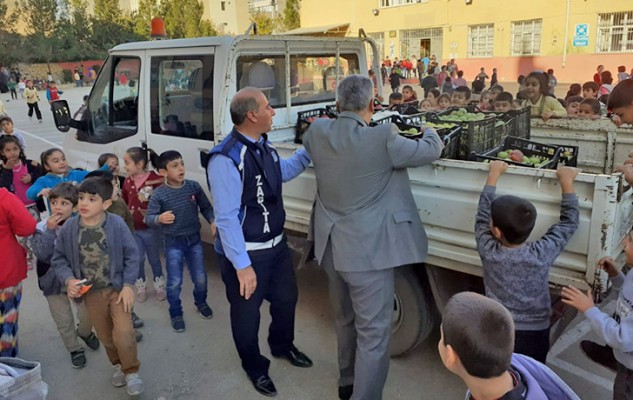 Ceylanpınar Belediyesi tarafından ilçedeki okullara meyve dağıtımı yapıldı.