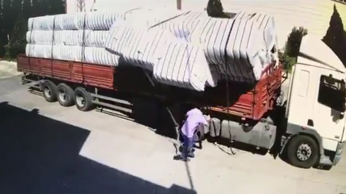 Sürücü, balyaları tutan halatları açmaya çalışırken, balyalar bir anda düşmeye başladı. Balyaların düştüğünü fark eden sürücü kaçmaya çalıştı ancak bu sırada balyalardan bazıları şanssız sürücünün kafasına düştü.