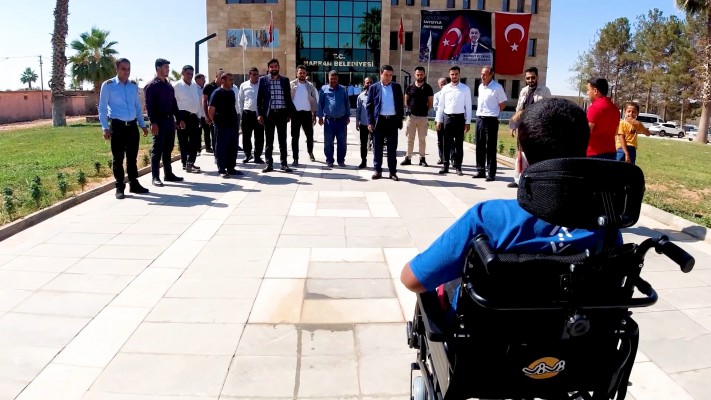 Manüel sandalyesiyle vedalaşarak Özyavuz’un talimatıyla Harran Belediyesi tarafından temin edilen akülü tekerlekli sandalyesine kavuşan Turap, talebine cevap veren Özyavuz'a teşekkür ederken mutluluğu da gözlerinden okundu.
