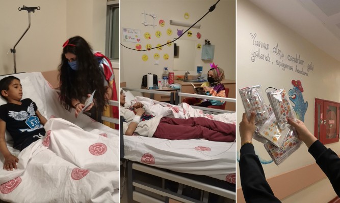 Şanlıurfa’da gönüllü palyaçolar, Harran Üniversitesi Tıp Fakültesi’nde tedavi gören çocuklara yönelik okuma etkinliği düzenledi.