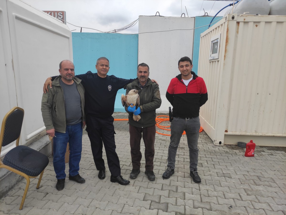 görevli emniyet personeli yaralı olan bir kartalı fark etti. Polisler durumu