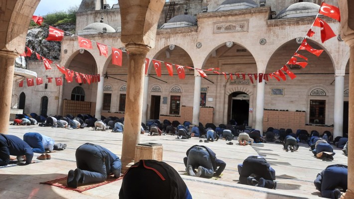 Şanlıurfa’da 11 ayın sultanı ramazanın ilk Cuma namazını kılmak isteyen vatandaşlar kentteki camileri doldurdu. En çok Balıklıgöl Platosu’ndaki Dergâh Cami’sine rağbet gösterildi. Buraya gelen yüzlerce kişi, camide yer bulamayınca avluda namaz kıldı. Cuma namazının pandemi ve artan vaka sayıları nedeniyle sosyal mesafe ve maske kurallarına riayet edilerek kılındığı görüldü.