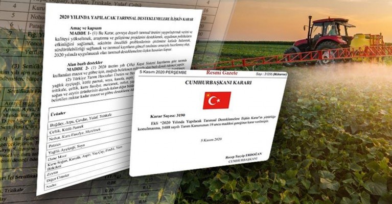 "2020 Yılında Yapılacak Tarımsal Desteklemelere İlişkin Cumhurbaşkanlığı Kararı", Resmi Gazete'nin mükerrer sayısında yayımlandı.