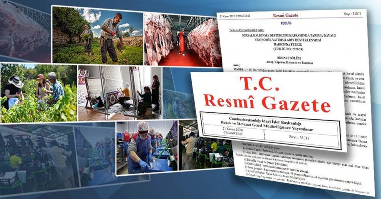 Tarım ve Orman Bakanlığının, Kırsal Kalkınma Destekleri Kapsamında Tarıma Dayalı Ekonomik Yatırımların Desteklenmesi Hakkında Tebliği Resmi Gazete'de yayımlandı.