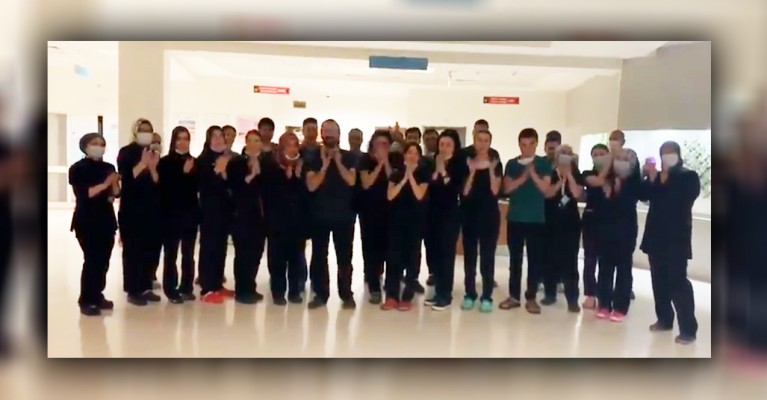 Bir video hazırlayan sağlık çalışanları, "Öncelikle evde kalıp bizi desteklediğiniz için asıl biz size teşekkür ediyoruz ve alkışlarımız sizler için" diyerek Şanlıurfalı vatandaşları alkışladı.