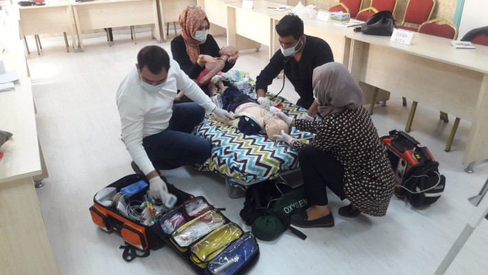 Şanlıurfa 112 Acil Sağlık Hizmetleri ile hastanelerin acil servislerinde görev yapacak doktor ve sağlık personeli adayları Şanlıurfa Sağlık Müdürlüğü Acil Sağlık Hizmetleri Başkanlığı Eğitim Ve simülasyon Merkezi’nde teorik ve pratik uygulamaların yer aldığı 'Temel Yaşam Desteği' eğitimi alıyor.