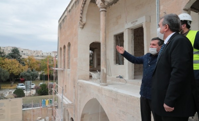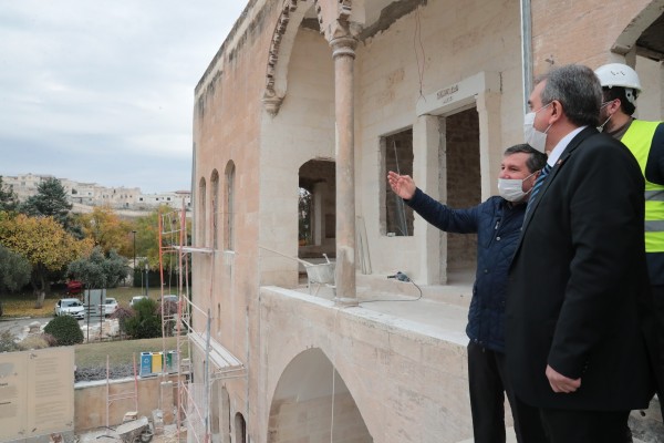 Sakıb'ın Köşküne giderek devam eden restorasyon çalışmalarını inceleyen Büyükşehir Belediye Başkanı Zeynel Abidin Beyazgül, teknik ekipten bilgi aldı.