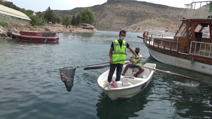 Güneydoğu'da bozkırın ortasında bulunan ve Birecik Baraj Gölü sayesinde sahil kentini andıran Şanlıurfa'nın Halfeti ilçesinde, temizlik çalışmaları sürüyor.