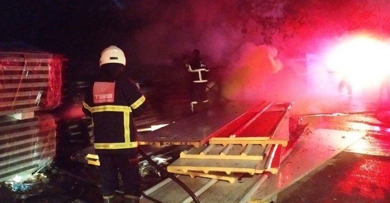 Yangın, bu akşam sanayide sandviç panellerin bulunduğu bölgede meydana geldi.