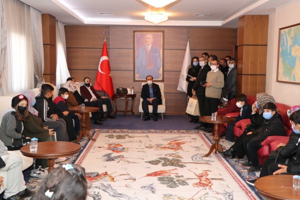 ŞURKAV tarafından 2019 Mart ayından itibaren uygulanmaya başlayan projenin 60 çocuğu kapsadığını hatırlatan Vali Erin, projeye bir hayırseverin 100 tablet bilgisayar ve 100 bin TL bağışta bulunduğunu belirterek, böylece projeden faydalanan çocuk sayısının 100’e ulaştığını ifade etti. İsminin açıklanmasını istemeyen hayırsevere teşekkür eden Vali Erin, program sonunda çocuklarla hatıra fotoğrafı çektirdi.