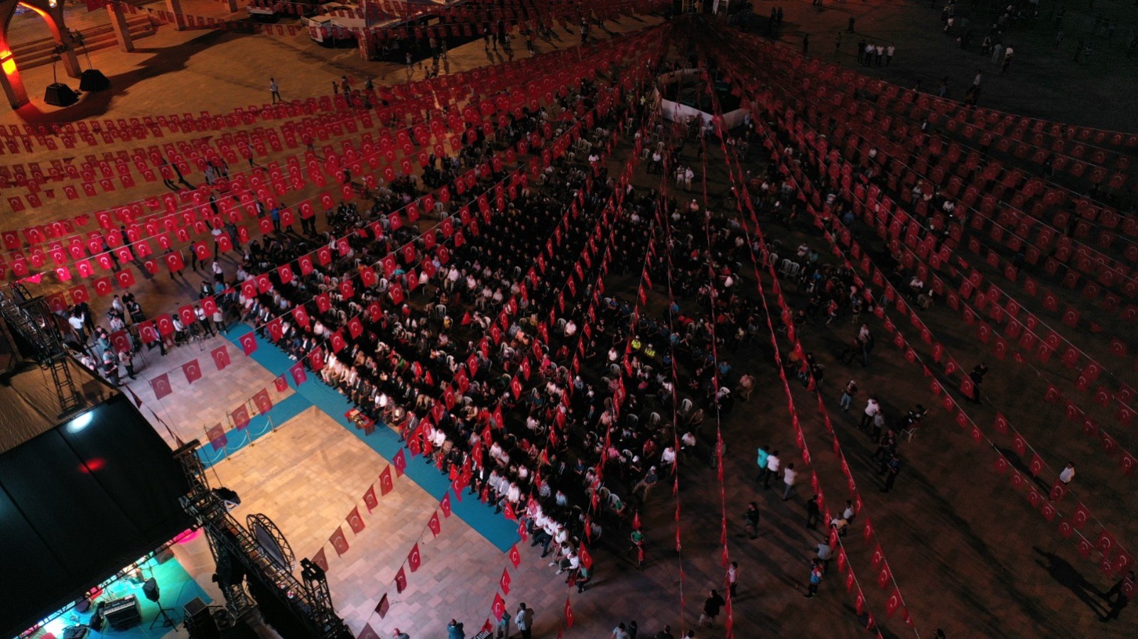 Programın yapıldığı Rabia Meydanında akşam namazlarını da toplu şekilde vatandaşlarla birlikte eda edildi. Namazın ardından “15 Temmuz Şehitlerini Anma, Demokrasi ve Milli Birlik Günü” etkinlikleri saygı duruşunun ardından İstiklal Marşının okunmasıyla başladı. Alanda okunan Kuran- ı Kerim Tilaveti ise dinleyenleri adeta mest etti. Okunan ilahiler ve semazen gösterimi de alanı dolduran vatandaşlar tarafından ilgiyle takip edildi.