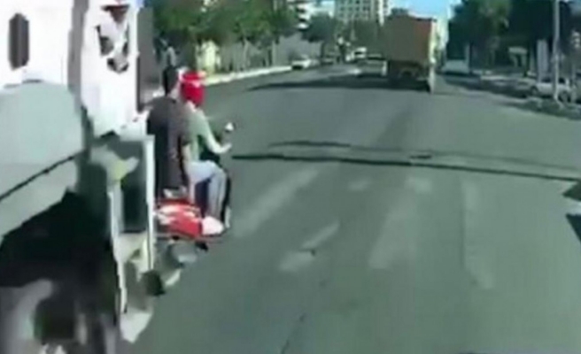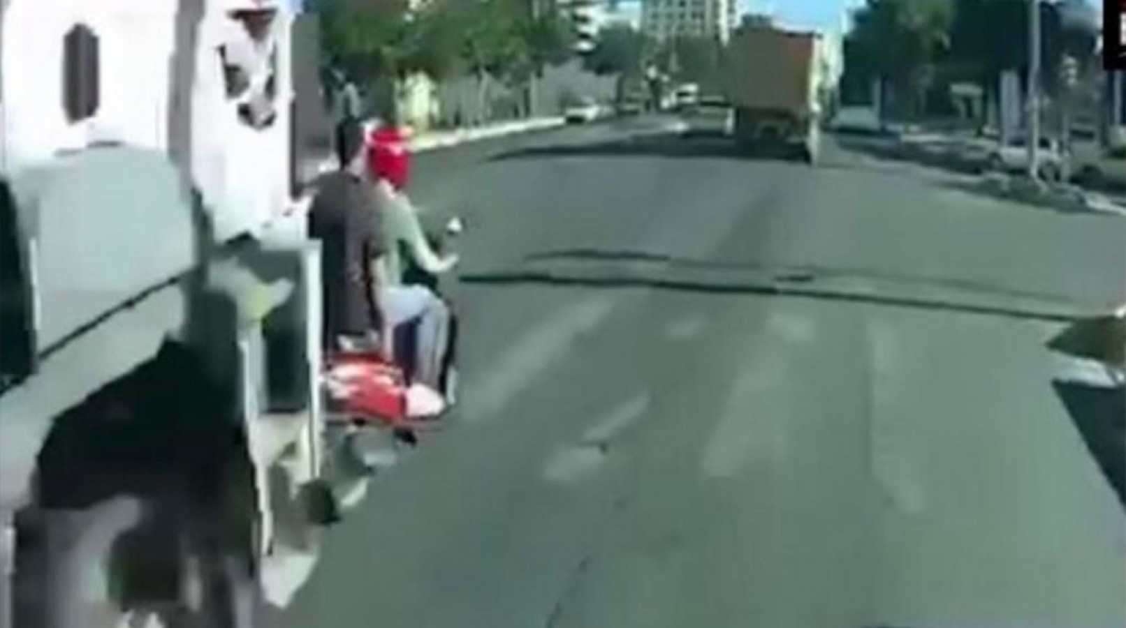 Kaza anı başka bir aracın kamerasına yansırken, kamyon