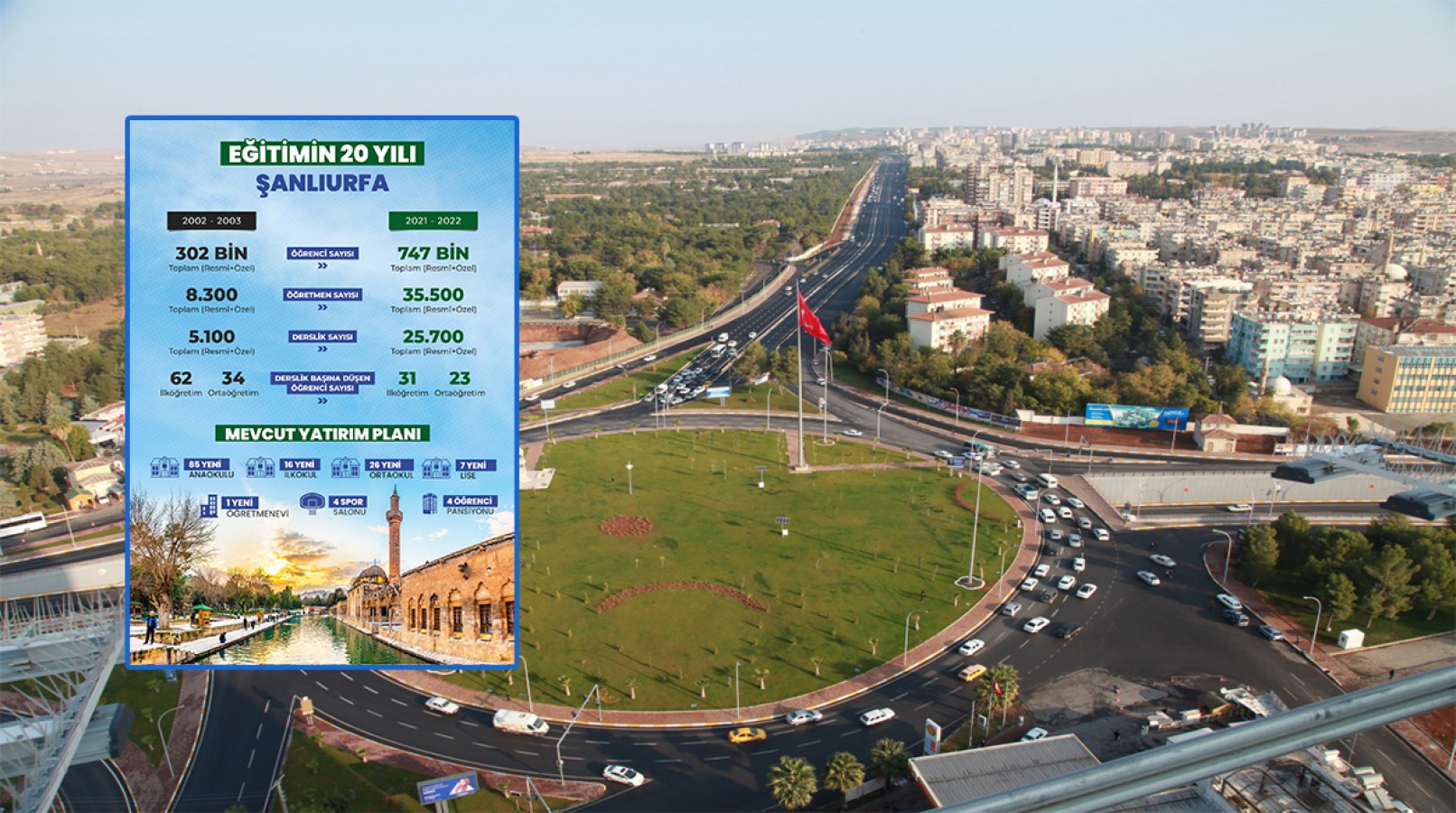 Bakanlığın  " 'Çocuklarımız için atılan her adım, bizi geleceğe taşır' anlayışıyla her şehrimizde, eğitimde çok boyutlu yatırımlarımızı sürdürüyoruz' ifadeleriyle Şanlıurfa’daki yatırımları paylaştığı görselde Urfa’daki okul, öğrenci, öğretmen sayıları gibi bilgiler yer aldı.
