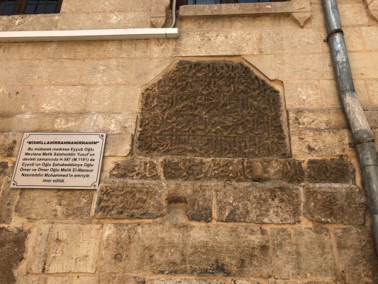 Araştırmacı-Yazar Müfid Yüksel, Eyyubiye İlçesi'nde Eyyubiye Şâfiî Medresesi'nin 587/1191-92 Tarihli Selahaddin Eyyubi'ye ait Arapça İnşâ/İkmâl Kitâbesi ve Tercümesi'nin ilk kez düzgün okunduğunu belirterek kitabenin Arapça ve Türkçe'sini kaleme aldı. Kitabe “Bu mübarek medresenin imâr/inşâsını, Rabbinin rahmetine (muhtaç) fakir kul Ömer bin Şahanşah bin Eyyub -Allahu Taâla ona Rahmet eylesin- emretmiştir, (bunun) ikmâlini/tamamlanmasını ise El-Melik El-Mansur Nâsıruddin Muhammed bin Ömer, Melik Selahaddin Yusuf bin Eyyub’un devleti/saltanatı zamanında, İmam Şâfii (mezhebi) mensupları için emretmiştir. Bu, Allahu Taâla’nın Rahmetine muhtaç Hamza eliyle beş yüz seksen yedi senesinde yapılmıştır” sözleriyle tercüme edildi.