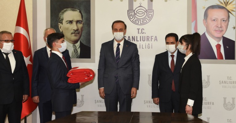 Valilik makamında, Aile, Çalışma ve Sosyal Hizmetler İl Müdürü Hasan Bilici’nin de hazır bulunduğu bayrak devir teslim töreninde, lise öğrencisi Muhammet Okçu’nun Diyarbakır’dan getirdiği bayrakları, Şanlıurfa’daki lise öğrencisi Esma Çelik devraldı. Bayrakları devralan ve devreden gençlere teşekkür eden Vali Erin, “Özgürlüğümüzün ve bağımsızlığımızın simgesi bayrağımızı en yükseğe taşıyacağımızdan şüphemiz yoktur.” diyerek, onları tebrik etti.