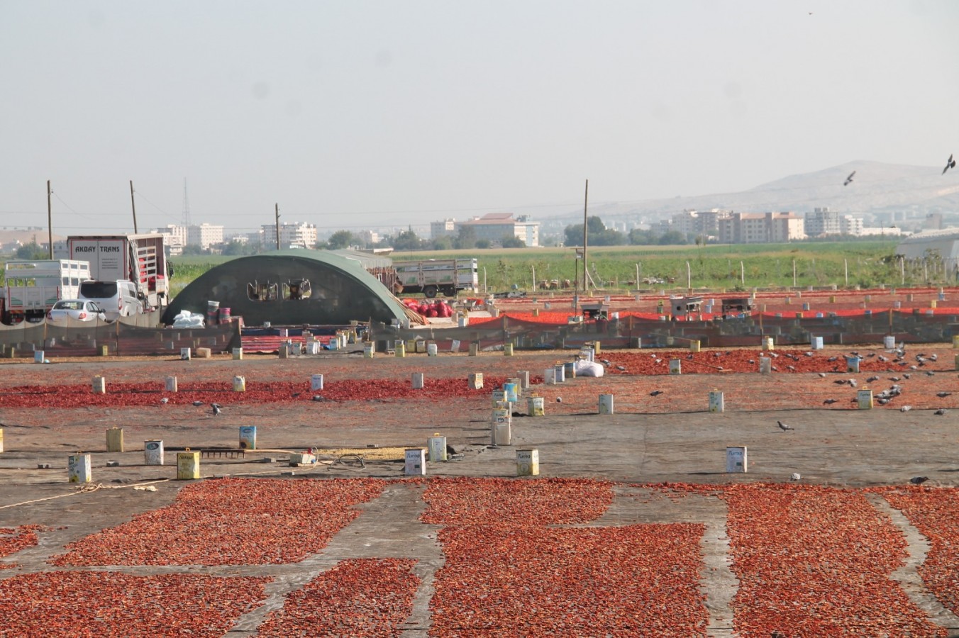 biberin kurumaya bırakılmasının ardından araziler adeta kırmızıya boyandı. Ekim