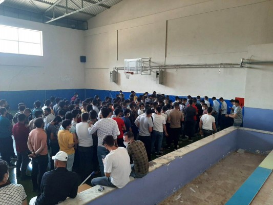 Şanlıurfa’da askere gidecek olan gençler askerlik şubesine gidip sülüslerini aldıklarında yeni tip korona virüs testi yaptırılması istendi. Asker adayları, Covid-19 testi yaptırması için gittikleri Eyyübiye ilçesinde bulunan Eyyüp Göncü Ortaokulu Spor Salonu’nda uzun kuyruklar oluşturduğu görüldü. Bir an önce Covid-19 testi yapmak isteyen gençlerin, bekleyiş sırasında Covid-19 kurallarına uymadıkları gözlendi. Görevlilerin uyarılarına rağmen gençlerin sosyal mesafe ve maske kuralını sık sık ihlal ettiği görüldü.