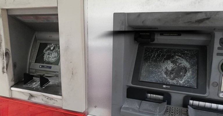Dün gece meydana gelen olayda, kimliği belirlenemeyen kişi veya kişiler, ATM’nin ekranını kırdı. ATM’ye zarar veren kişi veya kişiler, daha sonra bölgeden uzaklaştı.