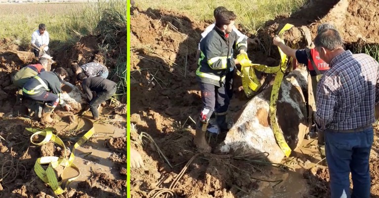 Şanlıurfa'da inek kurtarma operasyonu yapıldı.