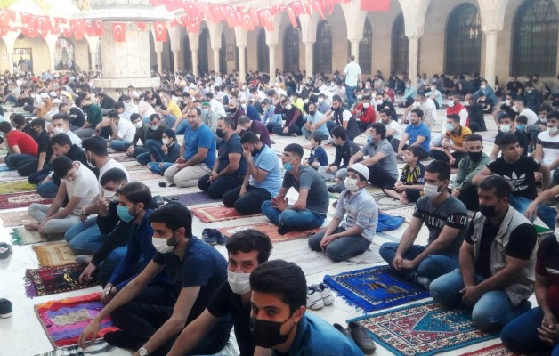 Peygamberler diyarı Şanlıurfa'da Bayram namazı, maske, mesafe ve hijyen koşulları sağlanarak camilerde kılındı. Bayram namazını kılmak için yüzlerce vatandaş, sabahın erken saatlerden itibaren Balıklıgöl Yerleşkesinde bulunan camilerin yolunu tuttu. Burada özellikle Dergah Camisinde yoğun kalabalık oluştu. Camide namaz kılan vatandaşlar, daha sonra dualar etti. Sosyal mesafe kuralları kapsamında camiye sığmayan çok sayıda vatandaş, yanında getirdiği seccade üzerinde cami avlusunda namazlarını eda etti.