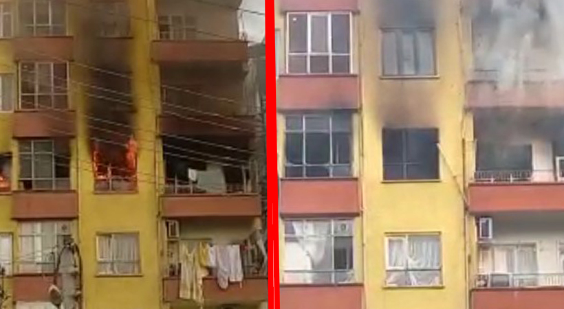 apartmanın 4. katında yangın çıktı. Kısa sürede büyüyen yangın evi sardı.