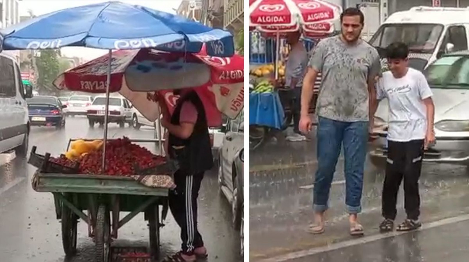 Dakikalarca süren yağış, yer yer su baskınlarına neden oldu. Sürücülerin ve vatandaşların yanı sıra dışarda meyve- sebze satan seyyar satıcıların zor anları, amatör kameralara anbean yansıdı.