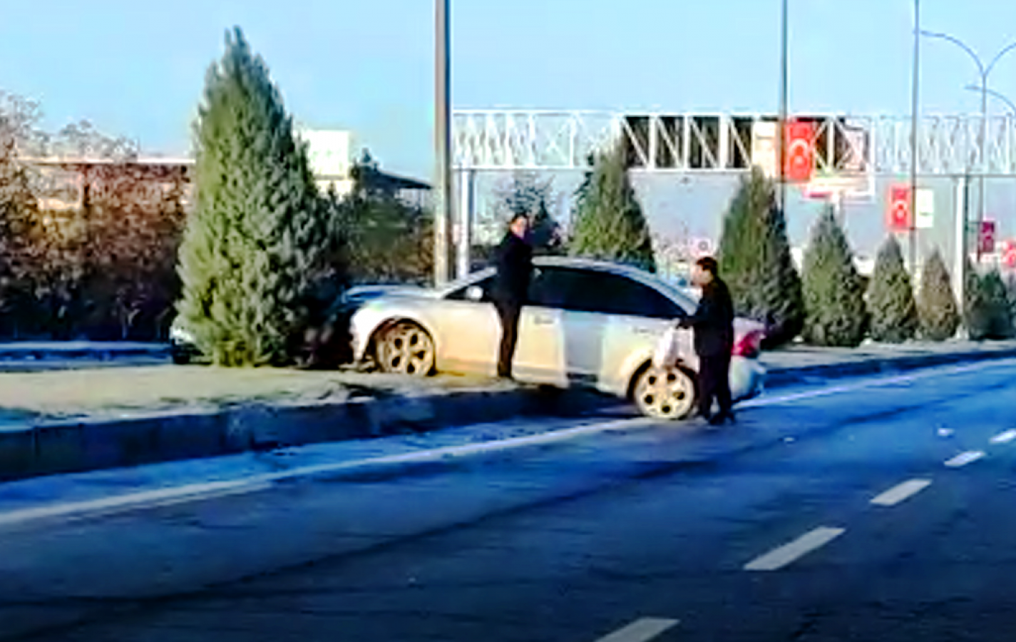 nedeniyle kontrolden çıktı. Yolda kayan otomobil orta refüje çıktı.