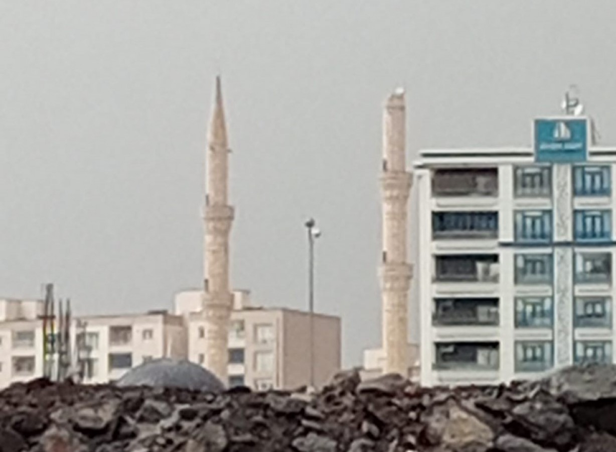 yıldırım düştü. Minarenin üst kısmı hasar gördü. Belediye ve emniyet