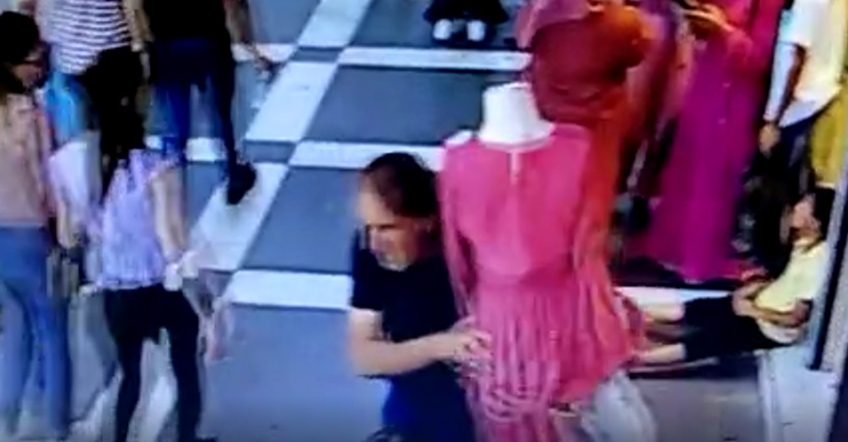Haliliye'de teşhir için mağaza önüne bırakılan ve üzerinde kırmız elbise bulunan cansız mankeni kucaklayarak çalan Ömer Faruk C., gözaltına alındı.