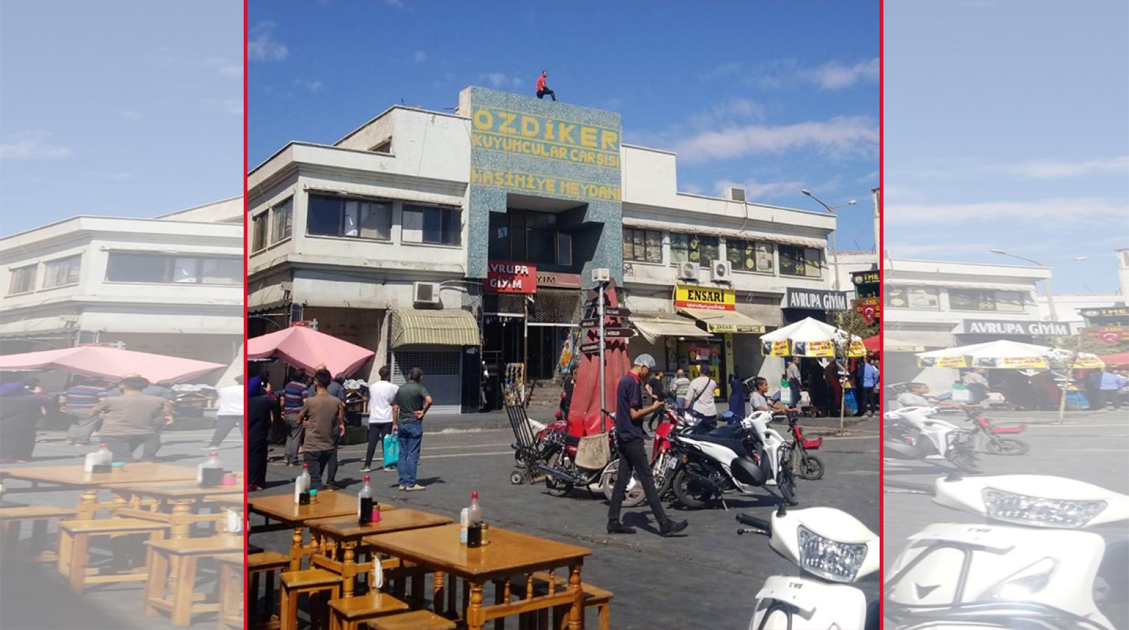 Haşimiye Meydanı’nda bulunan Özdiker Kuyumcular Çarsısı esnafından ismi henüz öğrenilemeyen bir şahıs, pompalı tüfekle iş hanının üst katına çıktı.