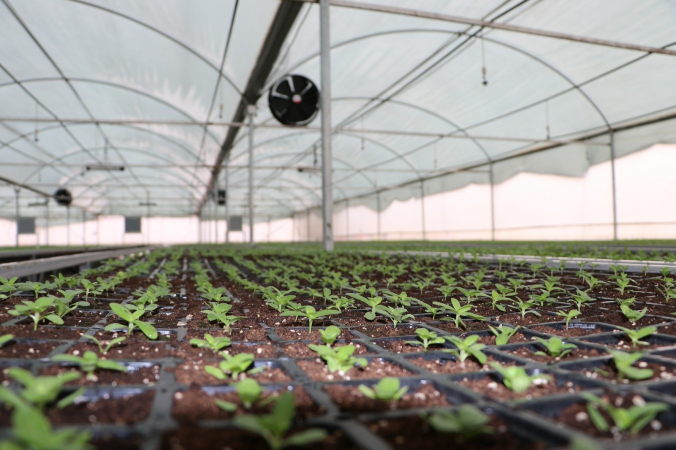 Tagetes, Petunya, Vinca gibi farklı türlerde yetiştirilen çiçek ve güller çeşitli aşamalardan geçirilerek kurulan seralarda modern sulama teknikleriyle sulanarak dikime hazır hale getiriliyor.