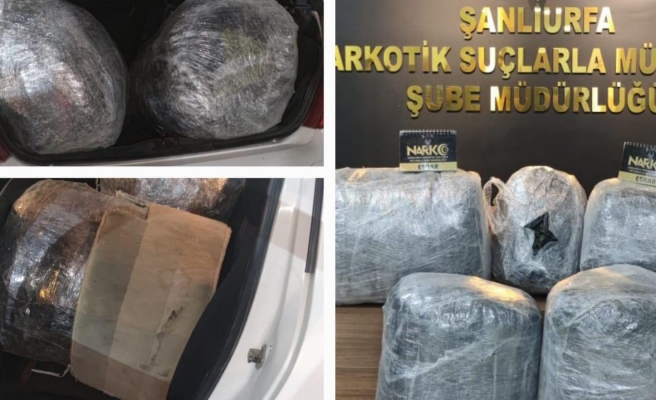 üzerine durdurulan iki araçtan 71 kilogram esrar maddesi ele geçirildi.