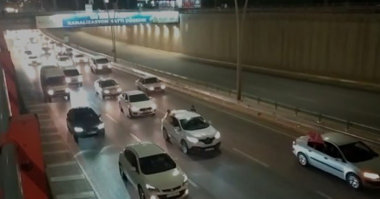 Konvoy, kornolar ve bayraklar eşliğinde şehir merkezinde ilerledi.
