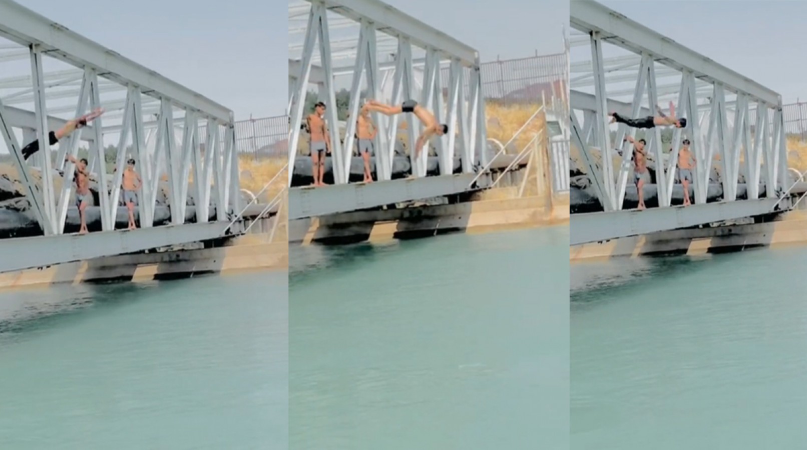 üzerindeki demir köprüden suya atlayan gençler adeta ölüme kulaç atıyor.