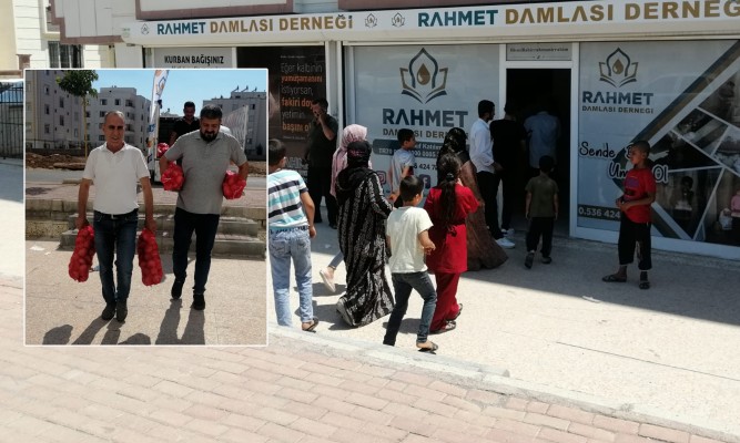 Kentte ihtiyaç sahibi ailelere çeşitli yardımlarda bulunan Rahmet Damlası Derneği, Kurban Bayramı’nda da muhtaç ailelerin yüzünü güldürdü. Rahmet Damlası Derneği, Kurban Bayramı dolayısıyla hayırseverlerin katkılarıyla 20 küçükbaş hayvan kesti. Paketlenen etler, birer çuval soğanla birlikte ihtiyaç sahibi ailelere dağıtıldı.