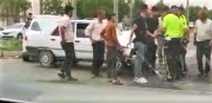 Sürücü isimleri ve plakaları belirlenemeyen iki otomobil dönel