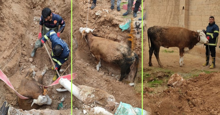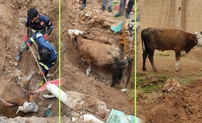 Akçakale İlçesi Sevimli Mahallesi'nde inek kurtarma operasyonu yapıldı.